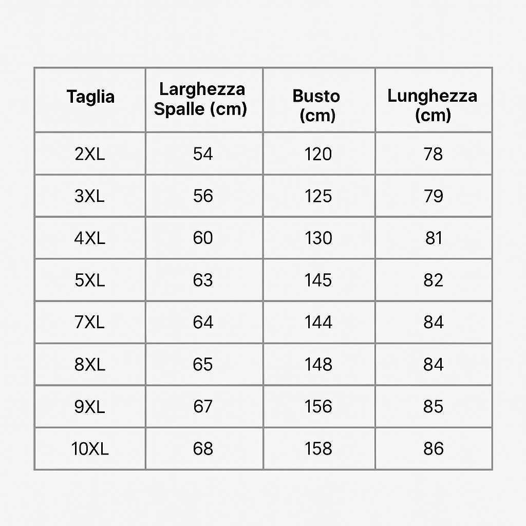 Ad ogni Modo qui sotto puoi trovare la nostra guida, se ancora sei in dubbio sulla scelta della taglia ti invitiamo a contattare il nostro servizio clienti CLCCANDO QUI